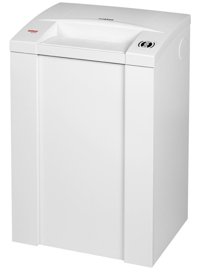 The Intimus 130 CP4 Cross Cut large office commercial paper shredder is of great value for any office. The Intimus 130 CP4 CC has a full size, 16-inch wide feed opening with an extra-powerful 1.5 horsepower continuous-duty motor. The Intimus 130 CP4 Cross Cut has a shred size of 5/32" x 1 13/32" with a shred capacity of 20 to 22 sheets per pass. The 130 CP4 has specially hardened steel cutting cylinders, dust-free operation, and a large catch basket. The 130 CP4 is completely mobile with heavy-duty casters. The Intimus 130 CP4 Cross Cut has a fully-automatic operation with user-friendly with visual indicators.